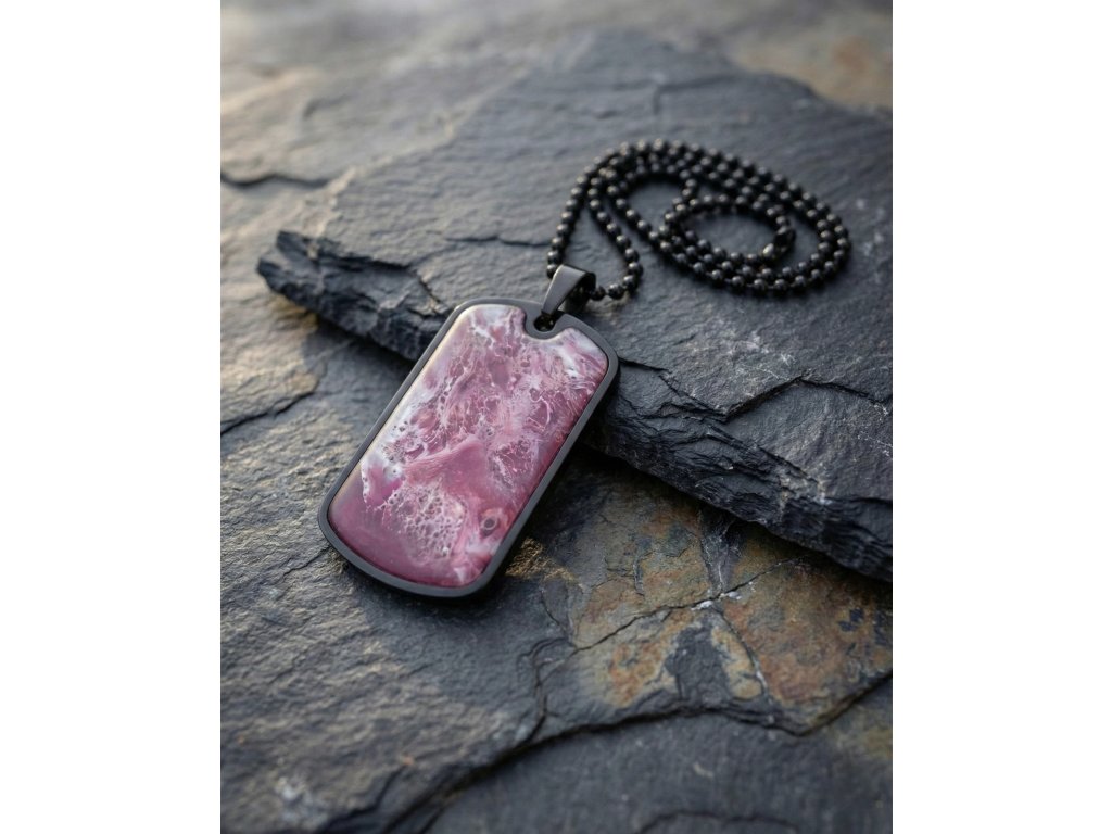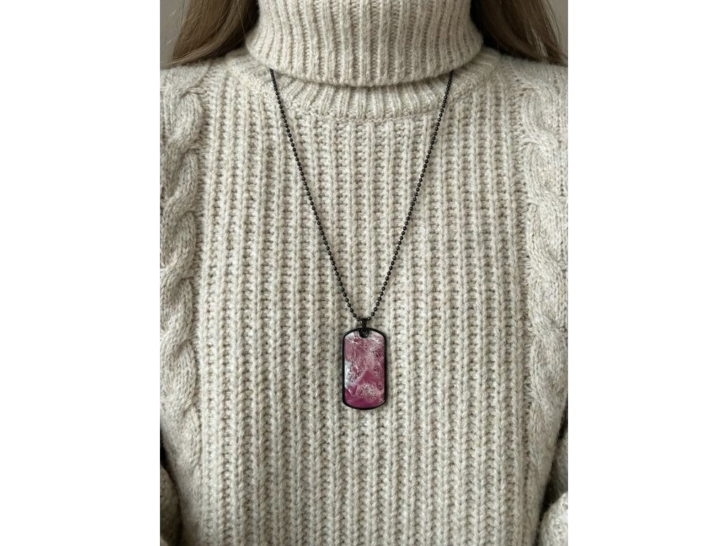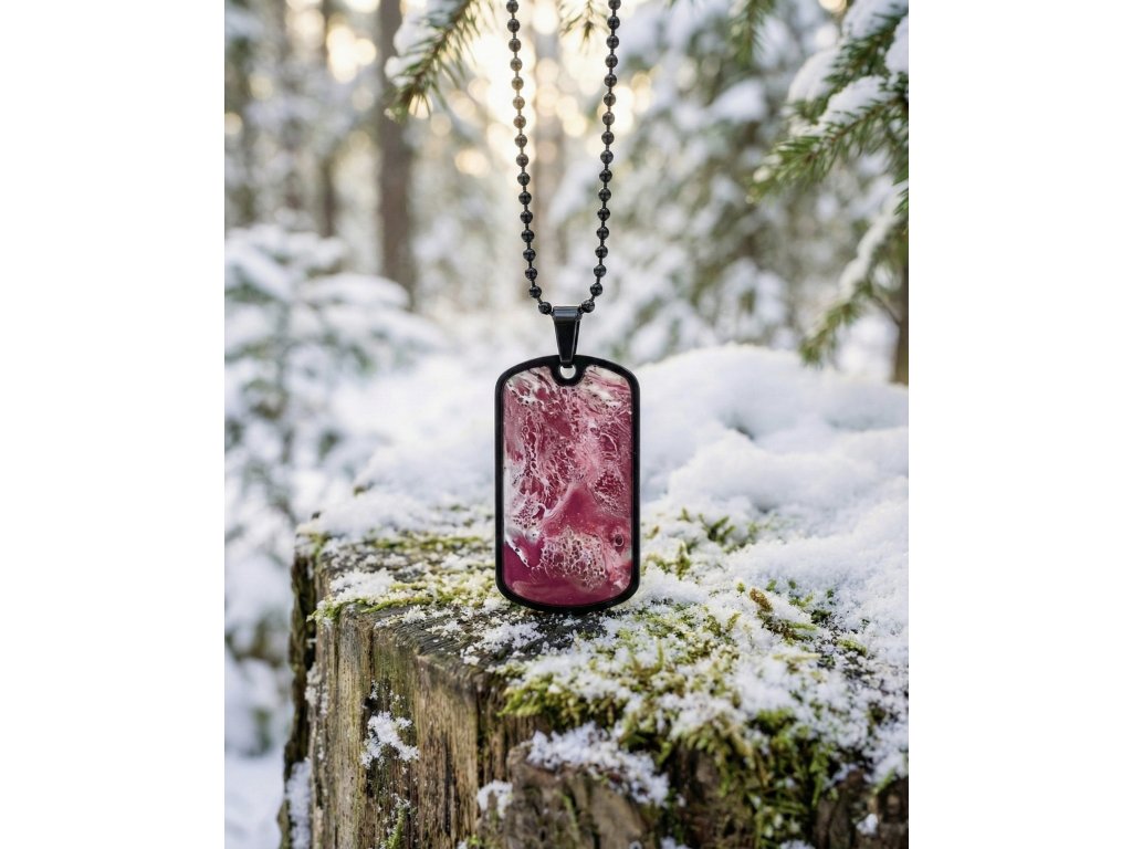 Designový přívěsek na krk neboli psí známka z limitované edice naší ručně vyráběné růžové pryskyřice Rose Dream.